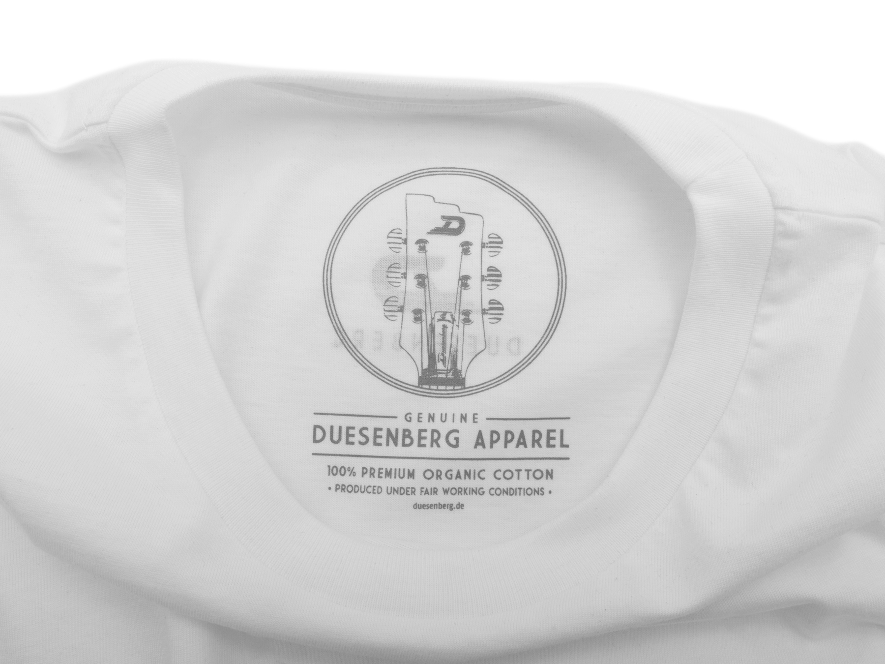 Die Shirts haben einen großen Print auf der Vorderseite, einen kleinen Nackenprint im Inneren und einen Logo Print auf der Rückseite im Nackenbereich. Und weil wir wollen, dass Du viele Jahre Spaß an Deinem Duesenberg T-Shirt hast, gibts für lange Farbtreue und optimalen Sitz natürlich auch bei Stoffen und Farben nur beste Qualität.