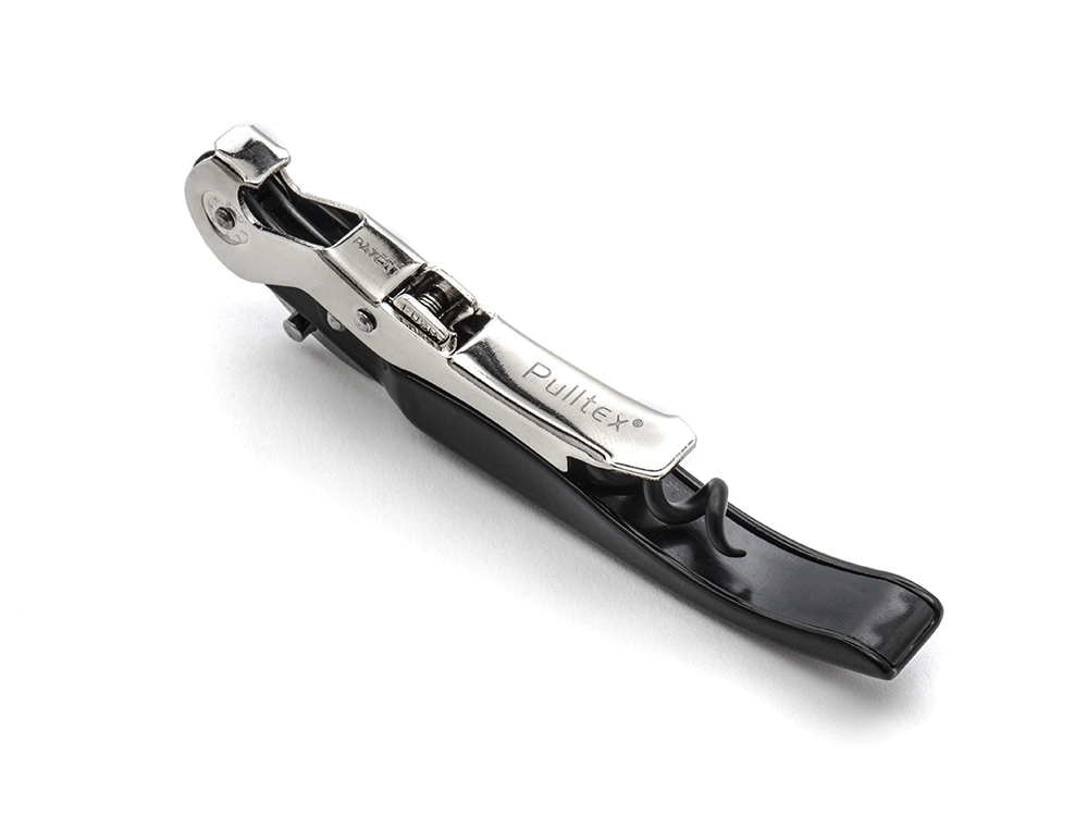 Nach Eindrehen der Spirale in den Korken (nicht zu weit!) drückt man den kleinen gefederten Schnepper auf die Flaschenhalskante, zieht den Korken ein Stück heraus und setzt dann den Korkenzieher unten auf. So lässt sich der Korken mit minimalem Kraftaufwand herausziehen. Kellnerbesteck vom Feinsten.