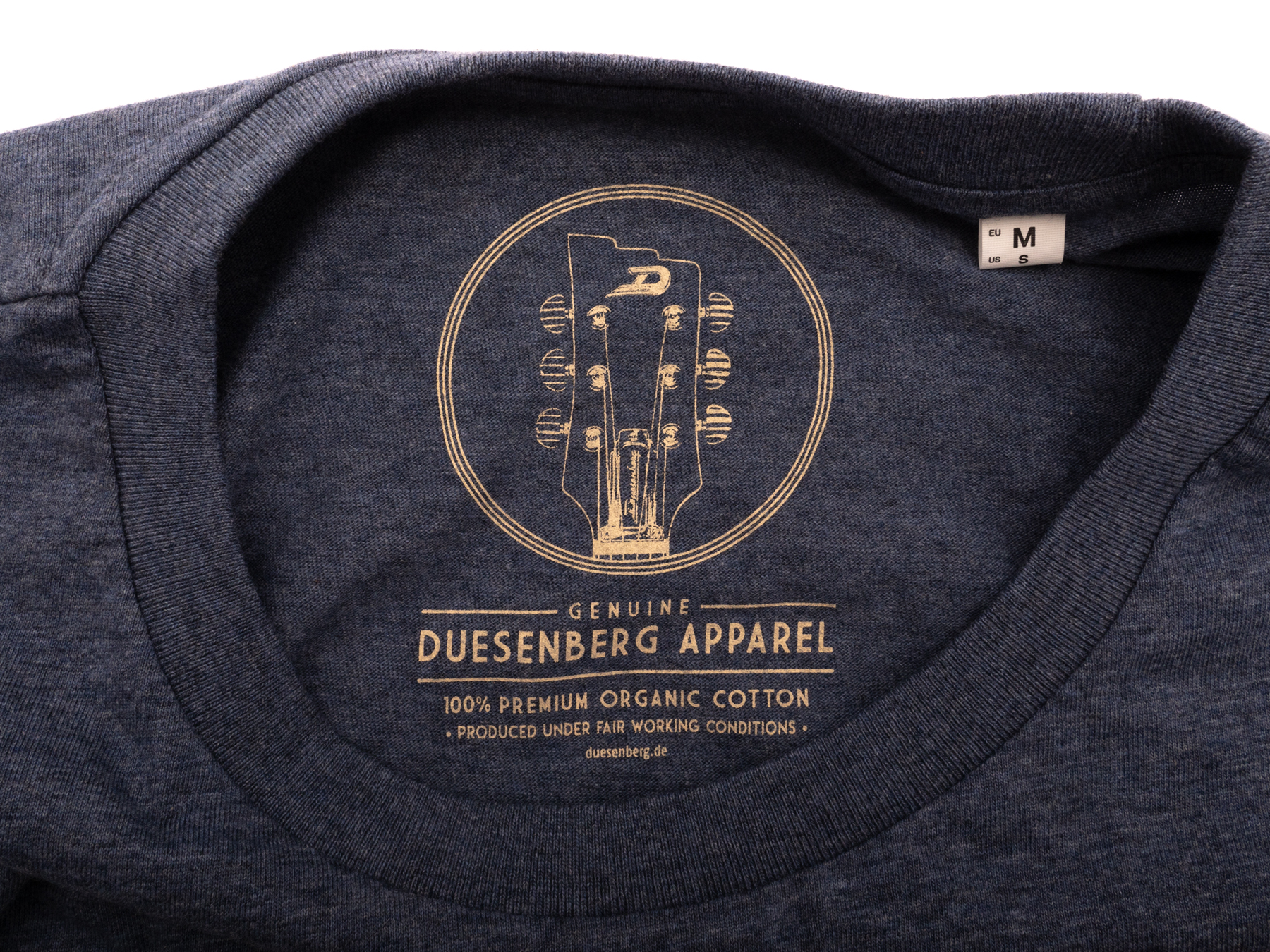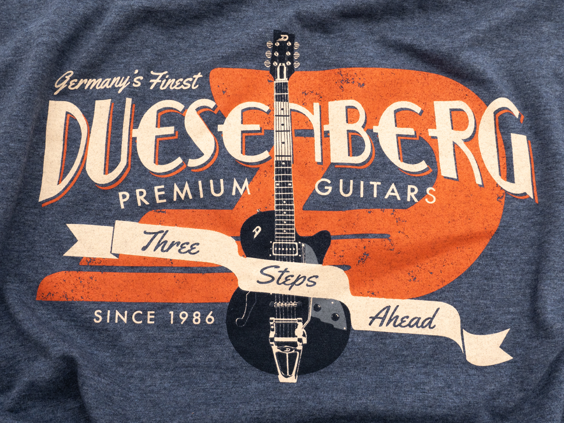 Die Shirts haben einen großen Print auf der Vorderseite, einen kleinen Nackenprint im Inneren und einen Logoprint auf der Rückseite. Und weil wir wollen, dass Du viele Jahre Spaß an Deinem Duesenberg T-Shirt hast, gibts für lange Farbtreue und optimalen Sitz natürlich auch bei Stoffen und Farben nur beste Qualität.