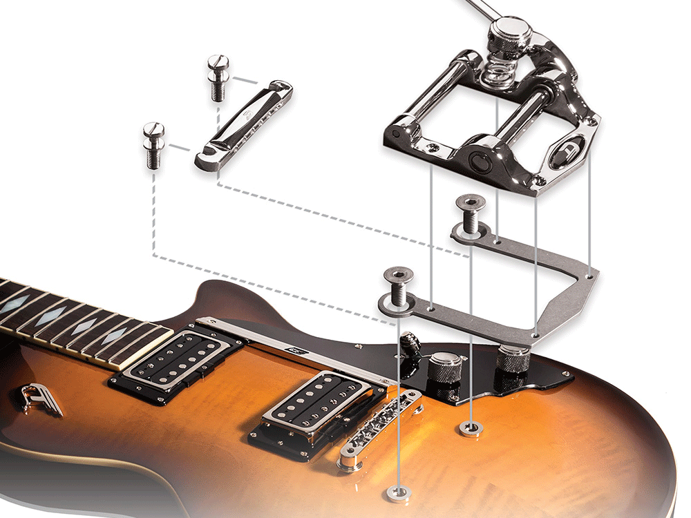Keinerlei Fräsen oder Bohren erforderlich! Für Links- und Rechtshänder-Versionen des Deluxe Tremola geeignet.