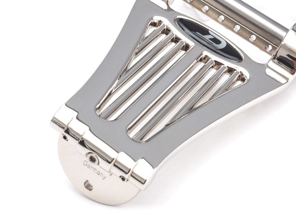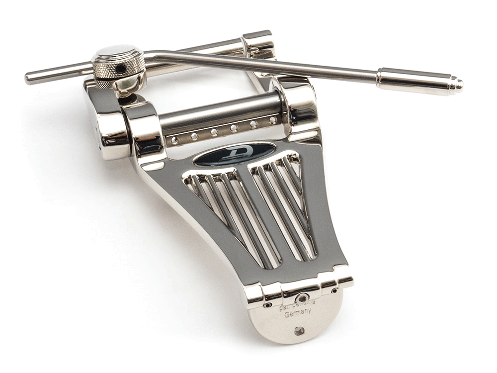 Mit einem stärkeren Fokus auf detailverliebtes Design bietet Dir das Radiator Tremola die gewohnte Duesenberg Qualität und Raffinesse, wie auch unser Standard Diamond Deluxe Tremola. Der Tremolohebel ist frei um 360° drehbar, im Winkel justierbar und kann innerhalb von Sekunden demontiert werden, wenn Du ihn mal nicht brauchst. Die Saiten werden beim Wechsel einfach in dene fest verschraubten Lochbalken unterhalb der Achse eingefädelt und völlig stressfrei zu den Mechaniken geführt. Kein Verrutschen, kein Festhalten nötig.
