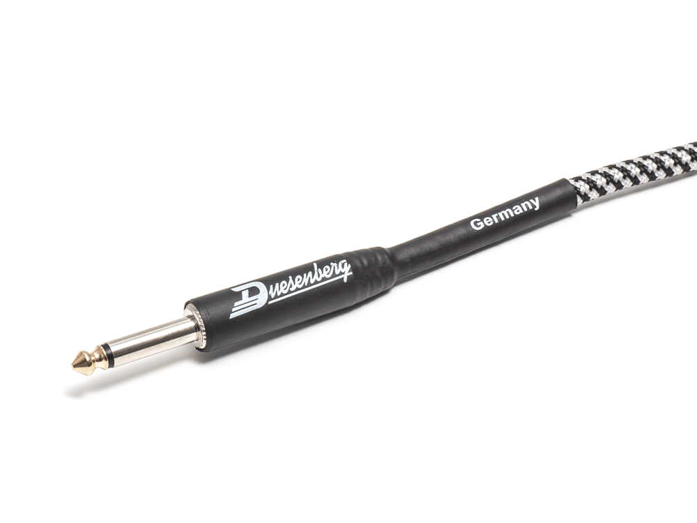 Das Duesenberg Blacksilver Instrumentenkabel kommt mit Klassicher Tweed Ummantelung und Heavy-Duty Klinkensteckern.
